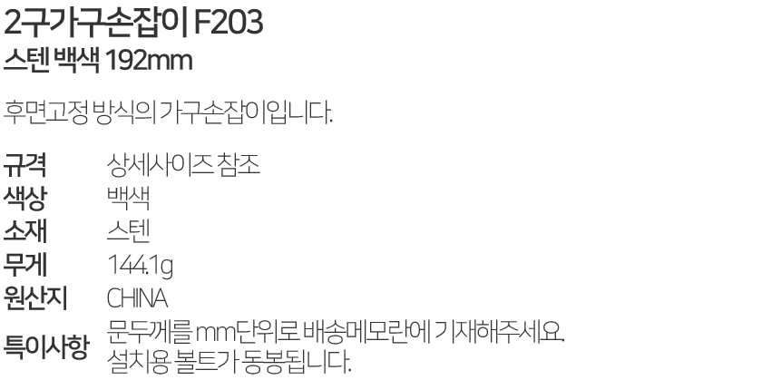 2±¸°¡±¸¼ÕÀâÀÌ F203 ½ºÅÙ ¹é»ö 192mm