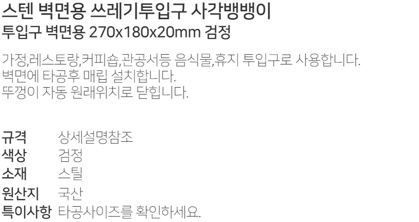 º®¸é¿ë ¾²·¹±âÅõÀÔ±¸ »ç°¢¹ð¹ðÀÌ 270x180x20mm °ËÁ¤